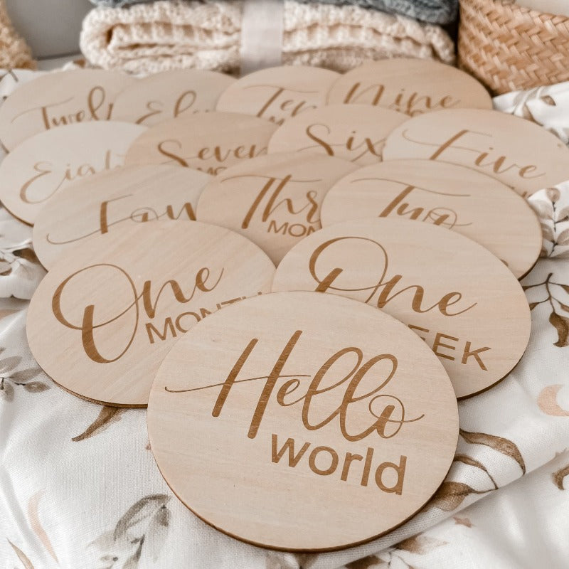 Your Snuggly Jacks Wooden Baby Milestone Disc Set Includes: