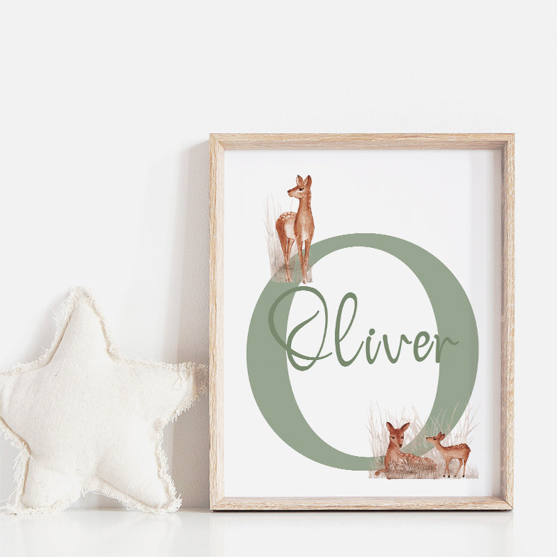 Create the most beautiful personalized piece of art for your nursery.  Match with any of our Fawn Nursery Range. The printable wall art files are a quick and affordable way to create the most tranquil of spaces. You could print at home or visit a printing service such as Kmart or Officeworks. Print on paper and frame or customise onto another product such as a canvas or a wall tapestry.