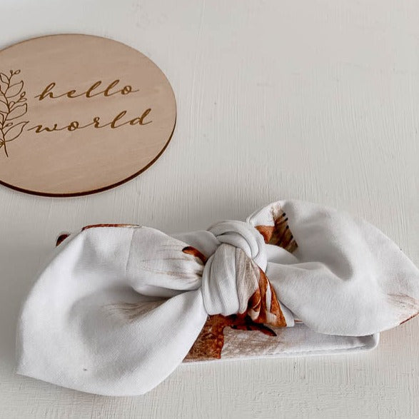 New mums love how soft and snuggly our Organic Jersey Cotton Top Knots are. The perfect way to upscale any announcement photo or just to use everyday.