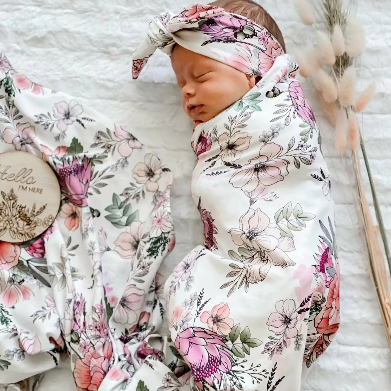 Matilda Jersey Swaddle Stretch Wrap & Top Knot Set