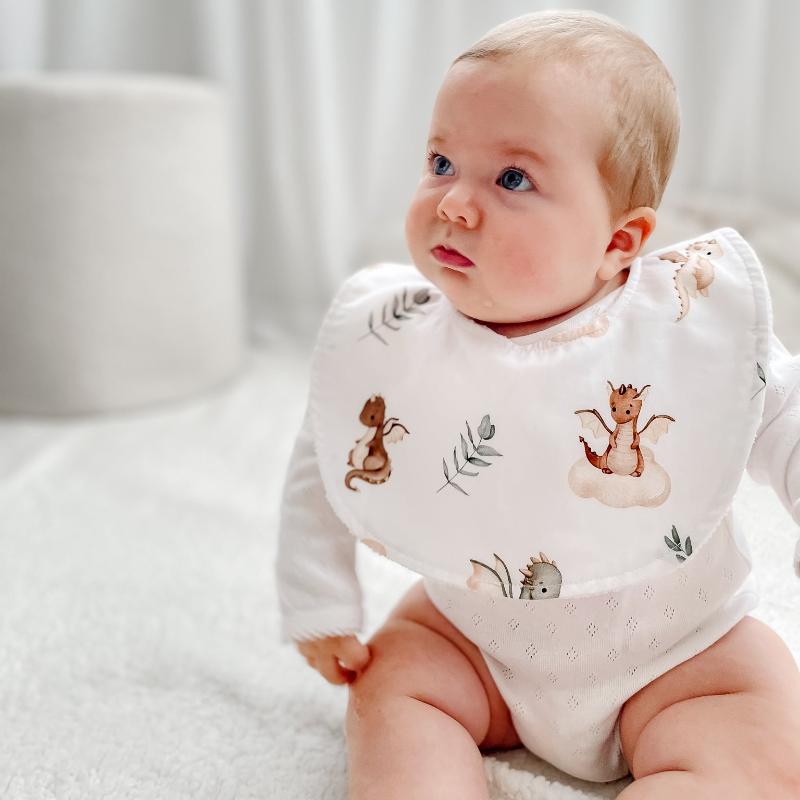 Embrace the magic of dragons with the Mystique Bib, combining enchanting design with practicality for every mealtime adventure.