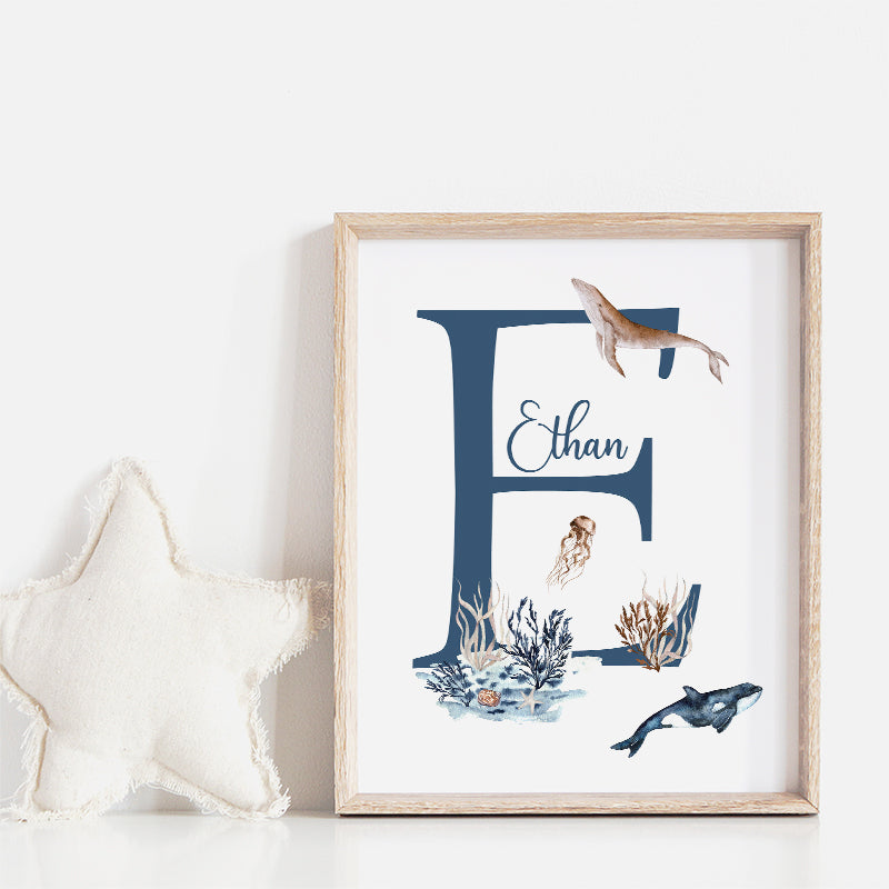 Create the most beautiful personalized piece of art for your nursery.  Match with any of our Ocean Nursery RangeThe printable wall art files are a quick and affordable way to create the most tranquil of spaces. You could print at home or visit a printing service such as Kmart or Officeworks. Print on paper and frame or customise onto another product such as a canvas or a wall tapestry.