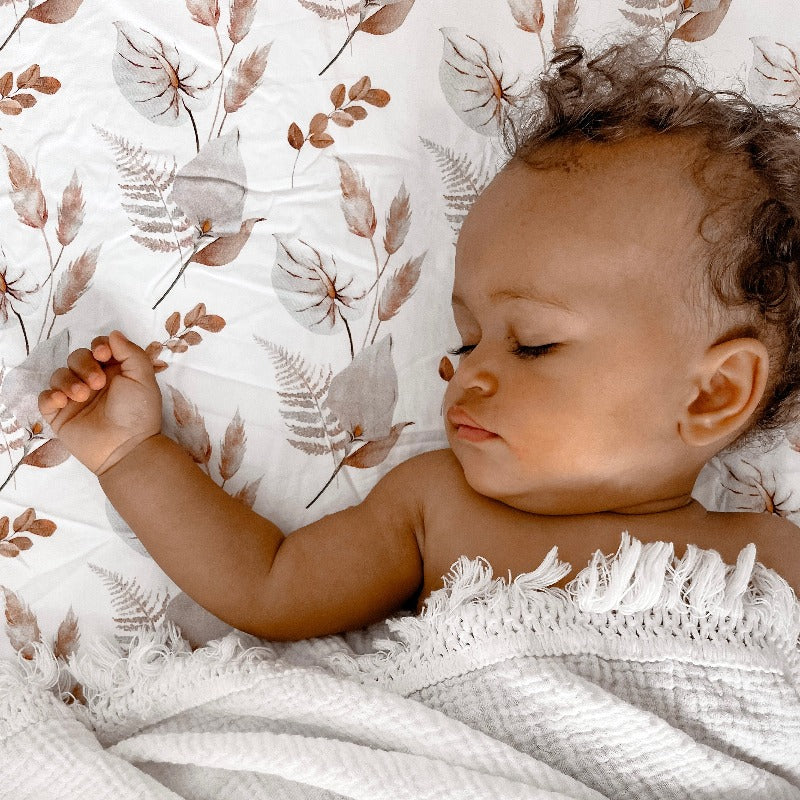 Our Porcelain cot sheets are very popular for those trying to create a natural nursery style. Pair them along with another of your favorite prints in our Bassinet Sheet / Change Mat Covers and our Rose Organic Knitted Blankets as seen in our photos to create the ultimate nursery room.