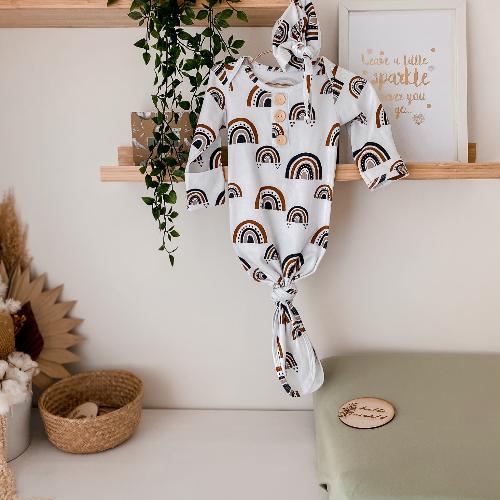 Complete with the sweetest tortoise brown buttons, matching beanies and fold-over mittens to avoid little scratched faces, the Snuggly Jacks knotted gowns are a wardrobe essential that simplify parenting life and keep your little love happy, safe and comfortable.