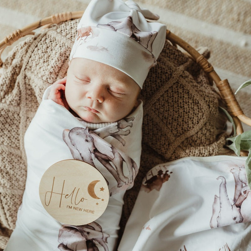 Safari Jersey Swaddle Stretch Wrap & Beanie Set