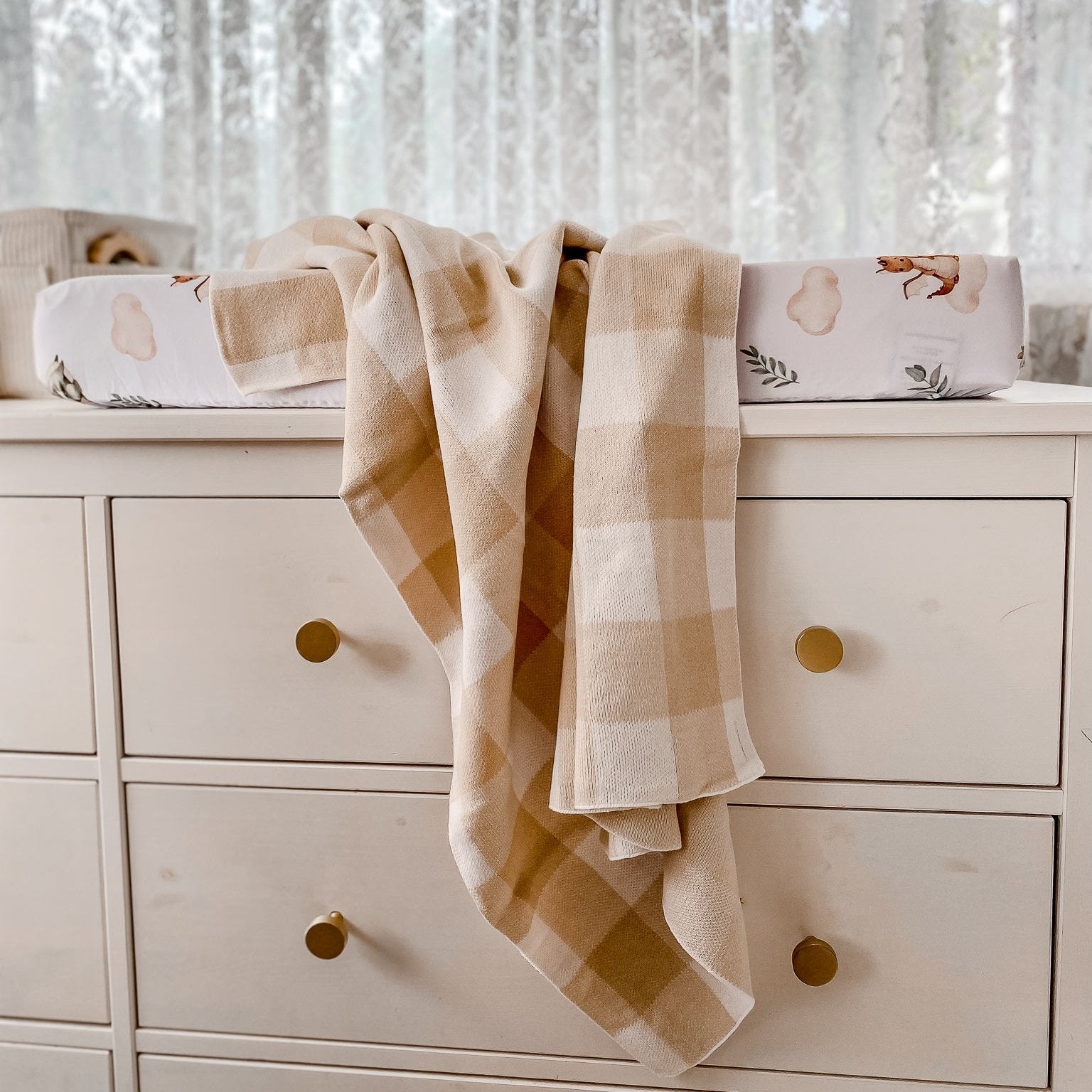 Sand Gingham Organic Knitted Blanket
