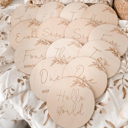 Capture your newborn baby’s first week, month and year with our gorgeous Wooden Baby Milestone Disc set to cherish forever and share your baby’s first special moments with your family & friends. Pair perfectly with any of our wraps or fitted sheets.